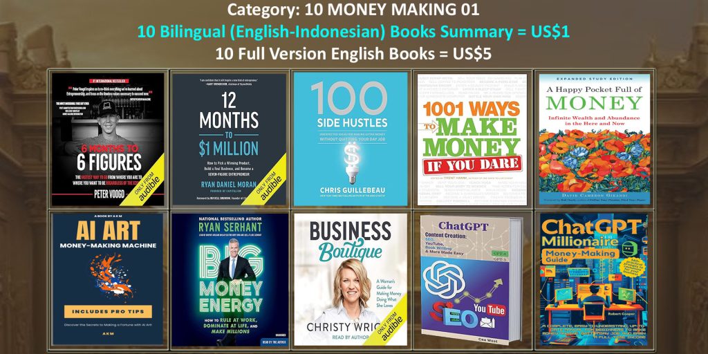 Untuk 10 buku summary dalam 2 bahasa (English-Indonesian), hanya perlu 1 dollar saja, atau Rp.16.000,-