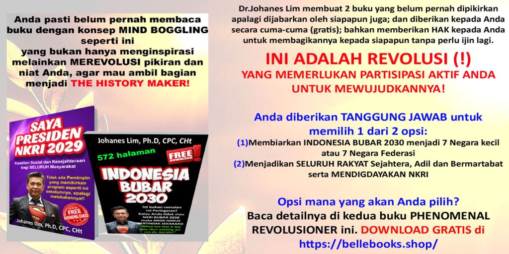 Dr.Johanes Lim menulis banyak artikel yang bisa Anda baca dan ambil manfaatnya secara gratis. SILAHKAN KLIK BANNER DIBAWAH UNTUK MEMBACANYA. Pergunakan TRANSLATION yang tersedia disemua website kami